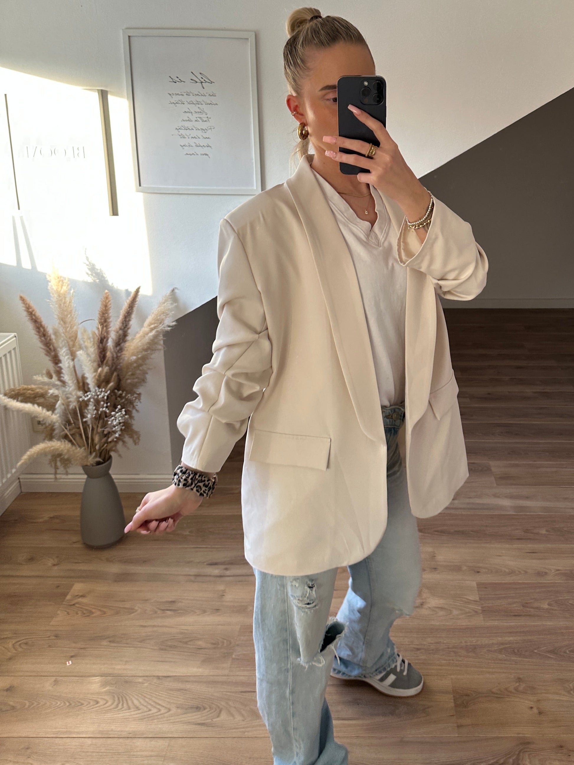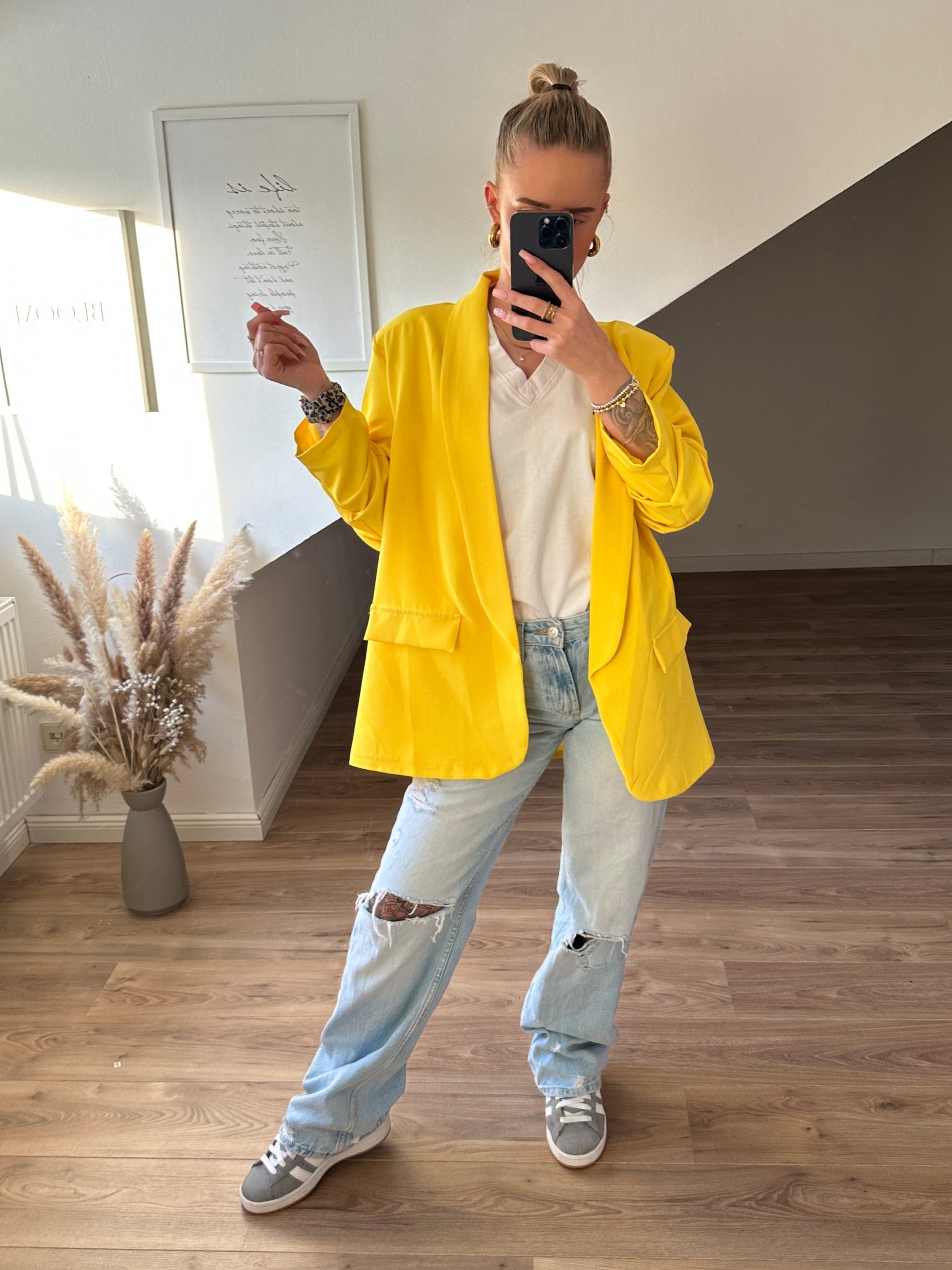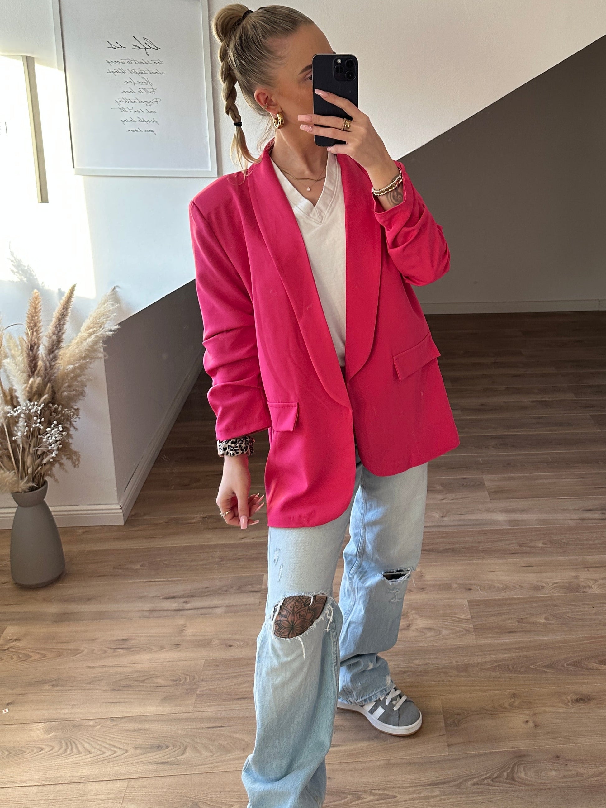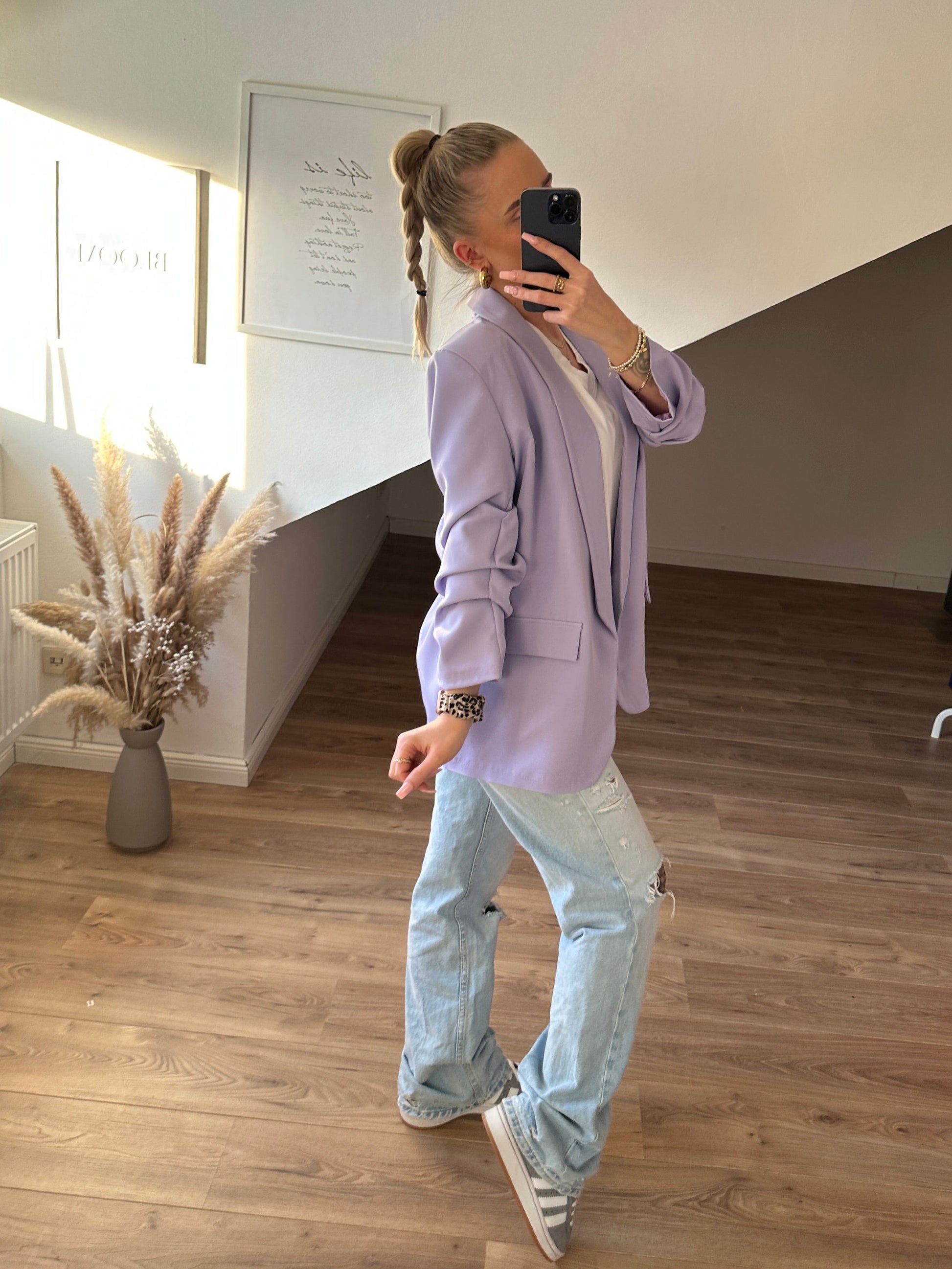 Kombinieren Sie diesen Blazer mit einer Bluse und einer eleganten Hose für einen professionellen Look im Büro. Für einen lässigen Abendlook tragen Sie ihn über einem T-Shirt und Jeans. Der Blazer lässt sich auch hervorragend mit einem Kleid kombinieren, um einen schicken, femininen Stil zu kreieren.