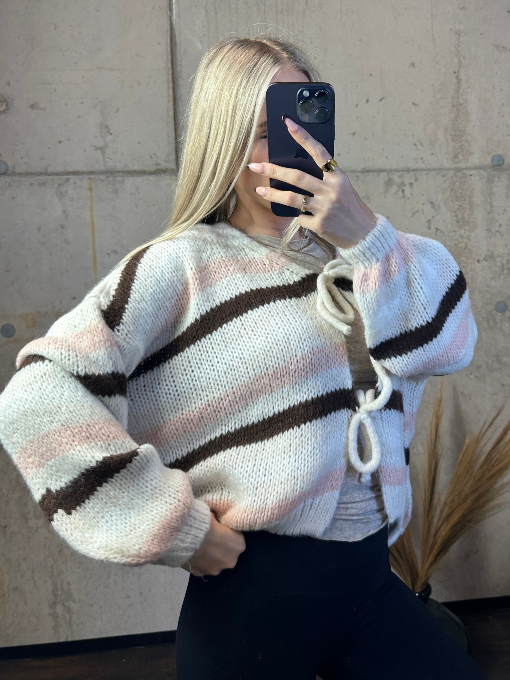 Knoten Cardigan "Leni" Streifi Braun/Apricot/Weiß