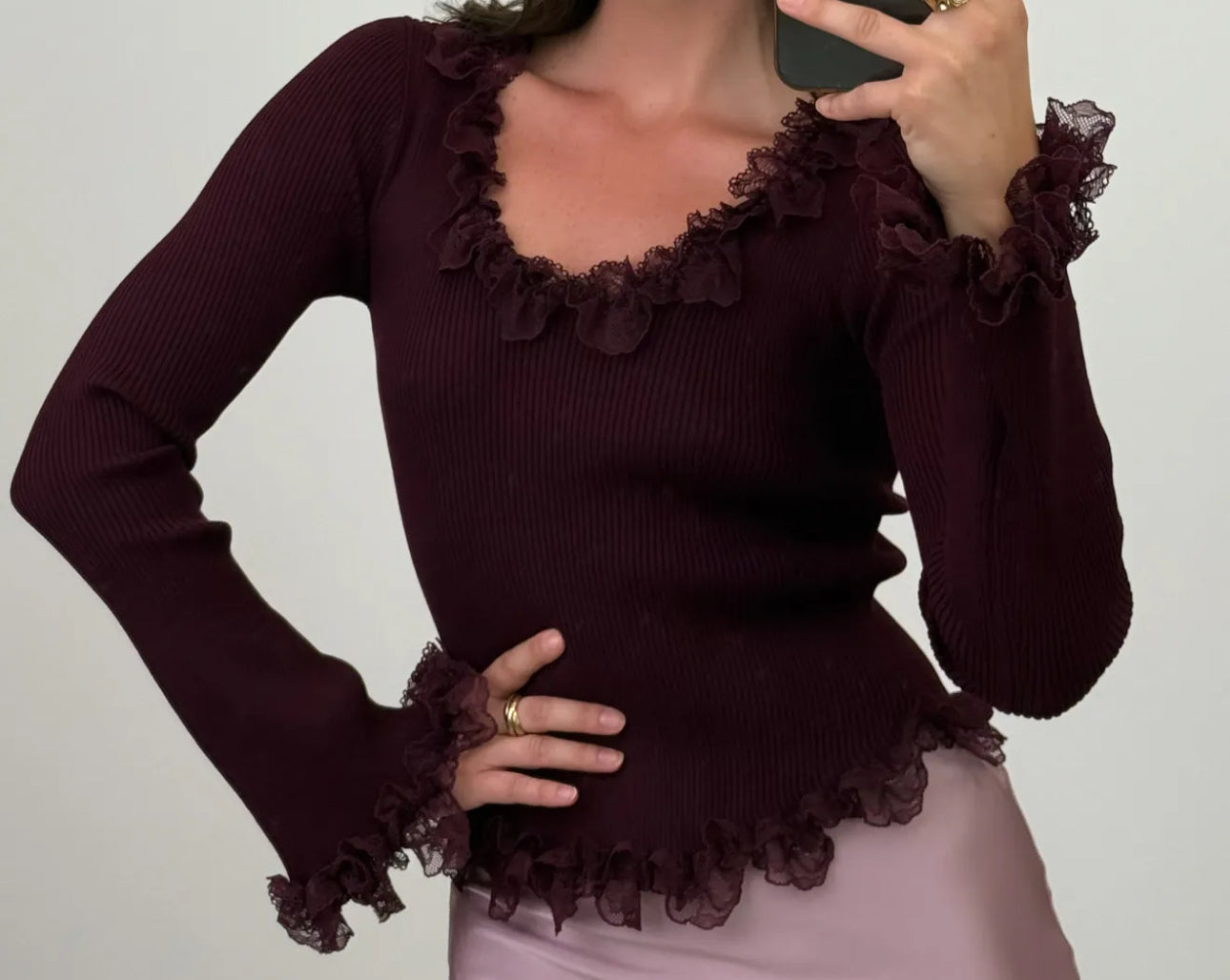 Langarm Rüschi Beige