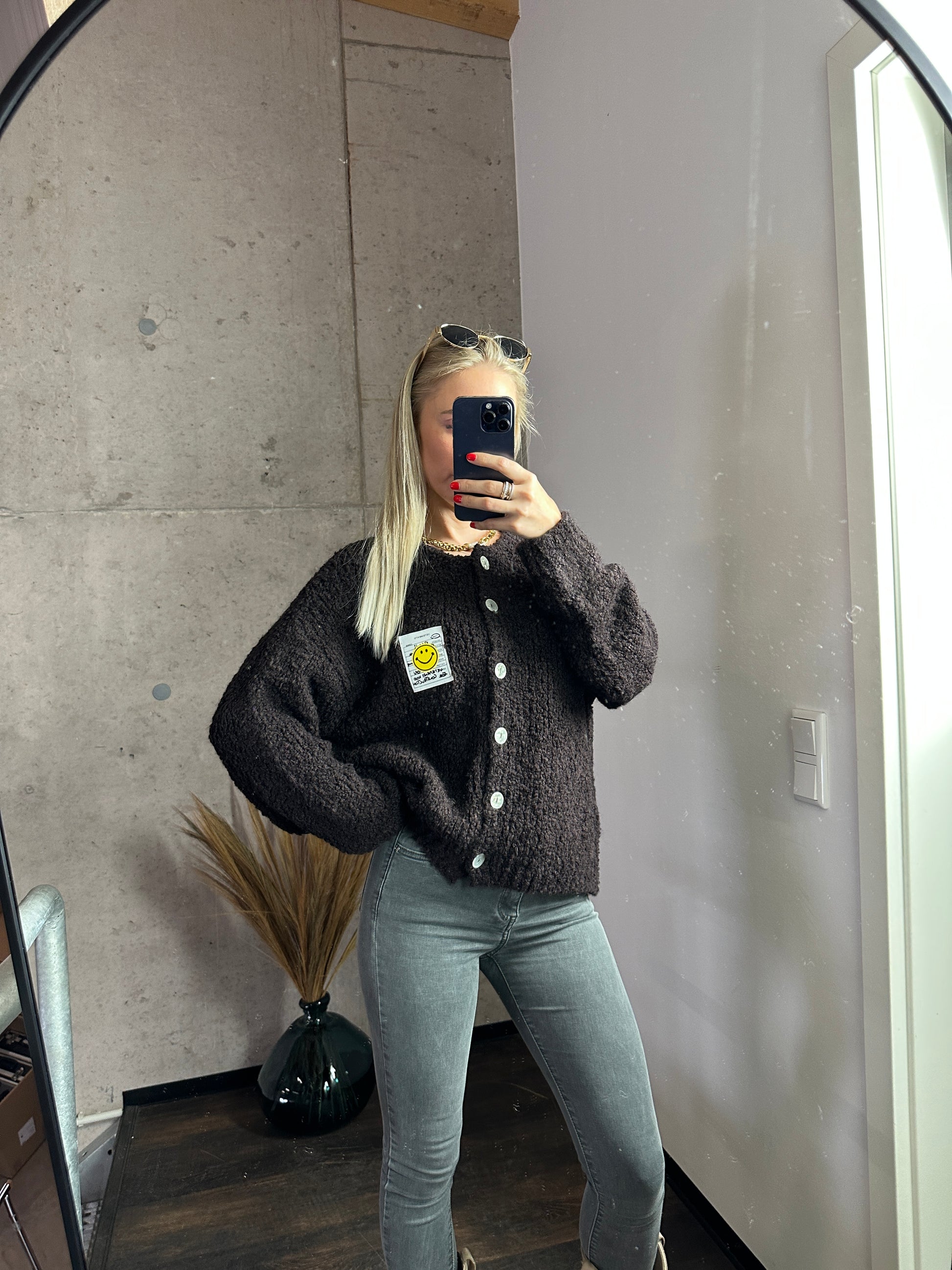 Unser kuschelweicher Smiley Cardigan ist mehr als nur ein Basic – er ist dein Gute-Laune-Begleiter für jede Jahreszeit!
