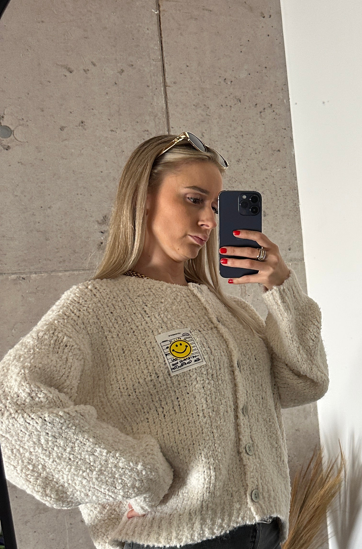 Unser kuschelweicher Smiley Cardigan ist mehr als nur ein Basic – er ist dein Gute-Laune-Begleiter für jede Jahreszeit!