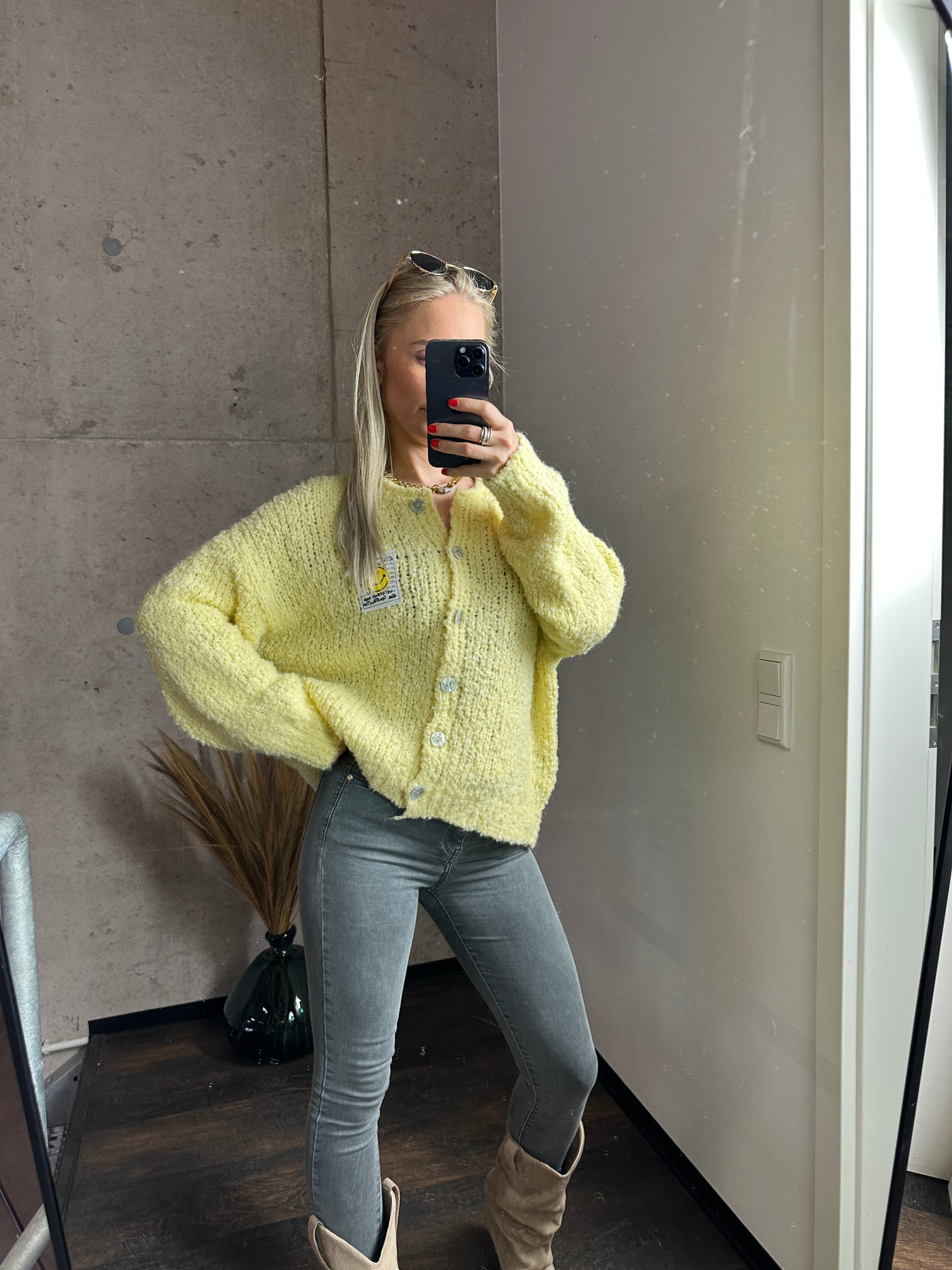 Unser kuschelweicher Smiley Cardigan ist mehr als nur ein Basic – er ist dein Gute-Laune-Begleiter für jede Jahreszeit!