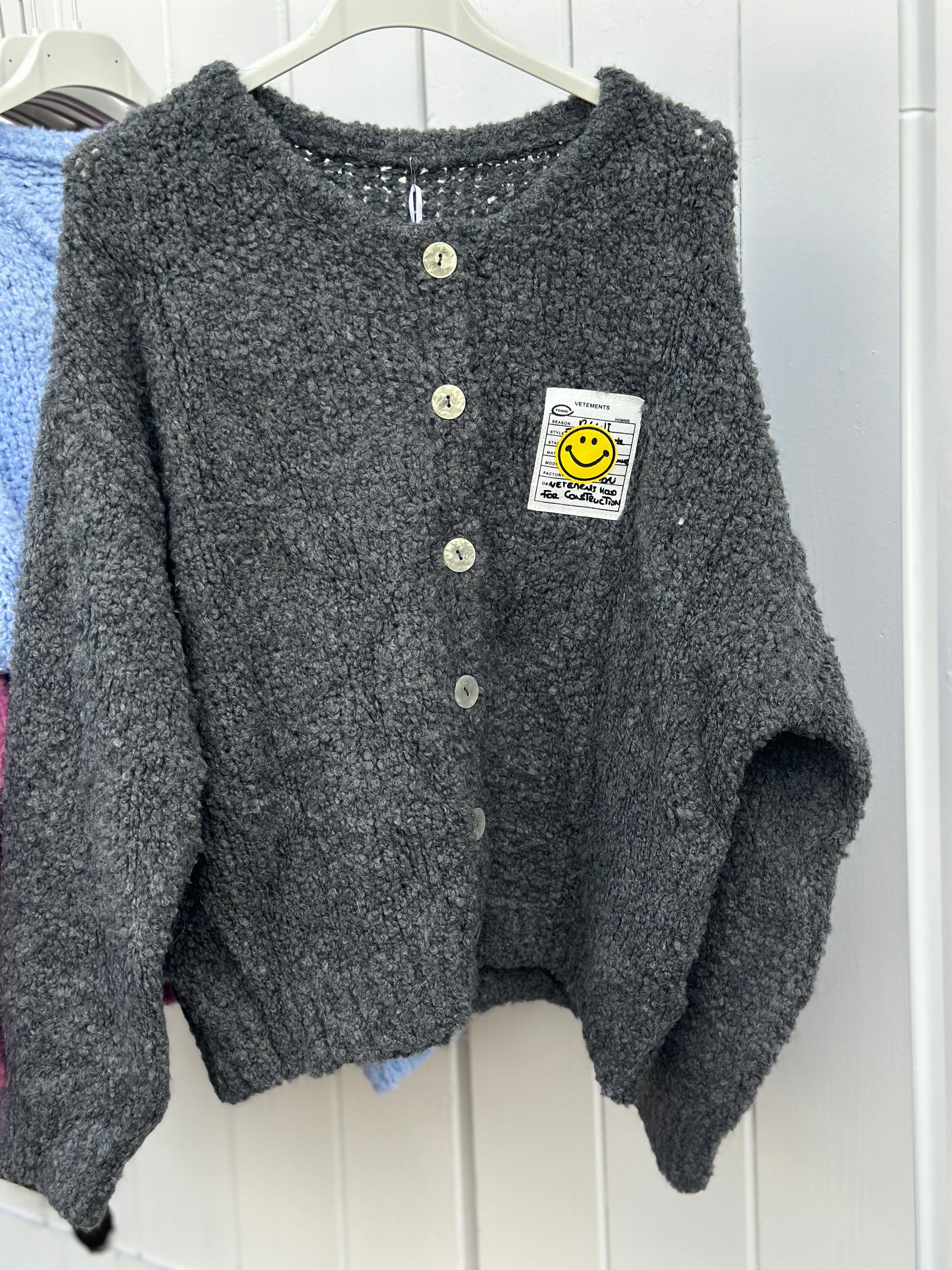 Unser kuschelweicher Smiley Cardigan ist mehr als nur ein Basic – er ist dein Gute-Laune-Begleiter für jede Jahreszeit!