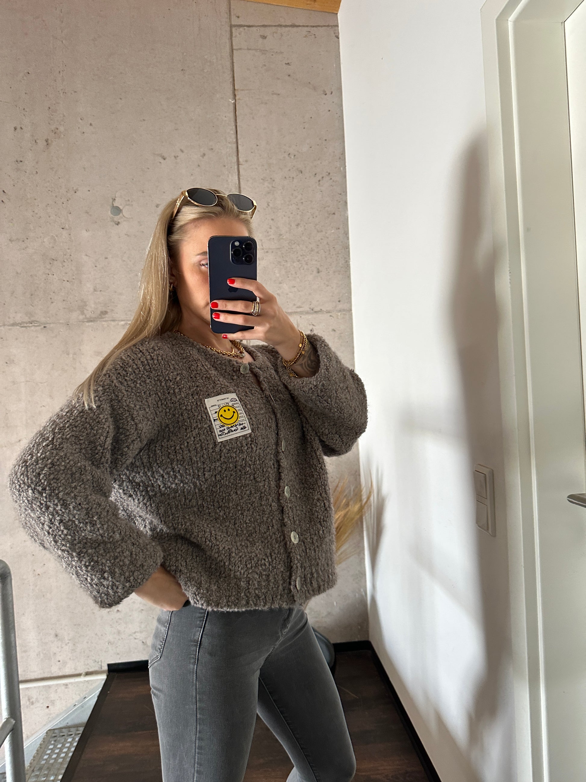 Unser kuschelweicher Smiley Cardigan ist mehr als nur ein Basic – er ist dein Gute-Laune-Begleiter für jede Jahreszeit!