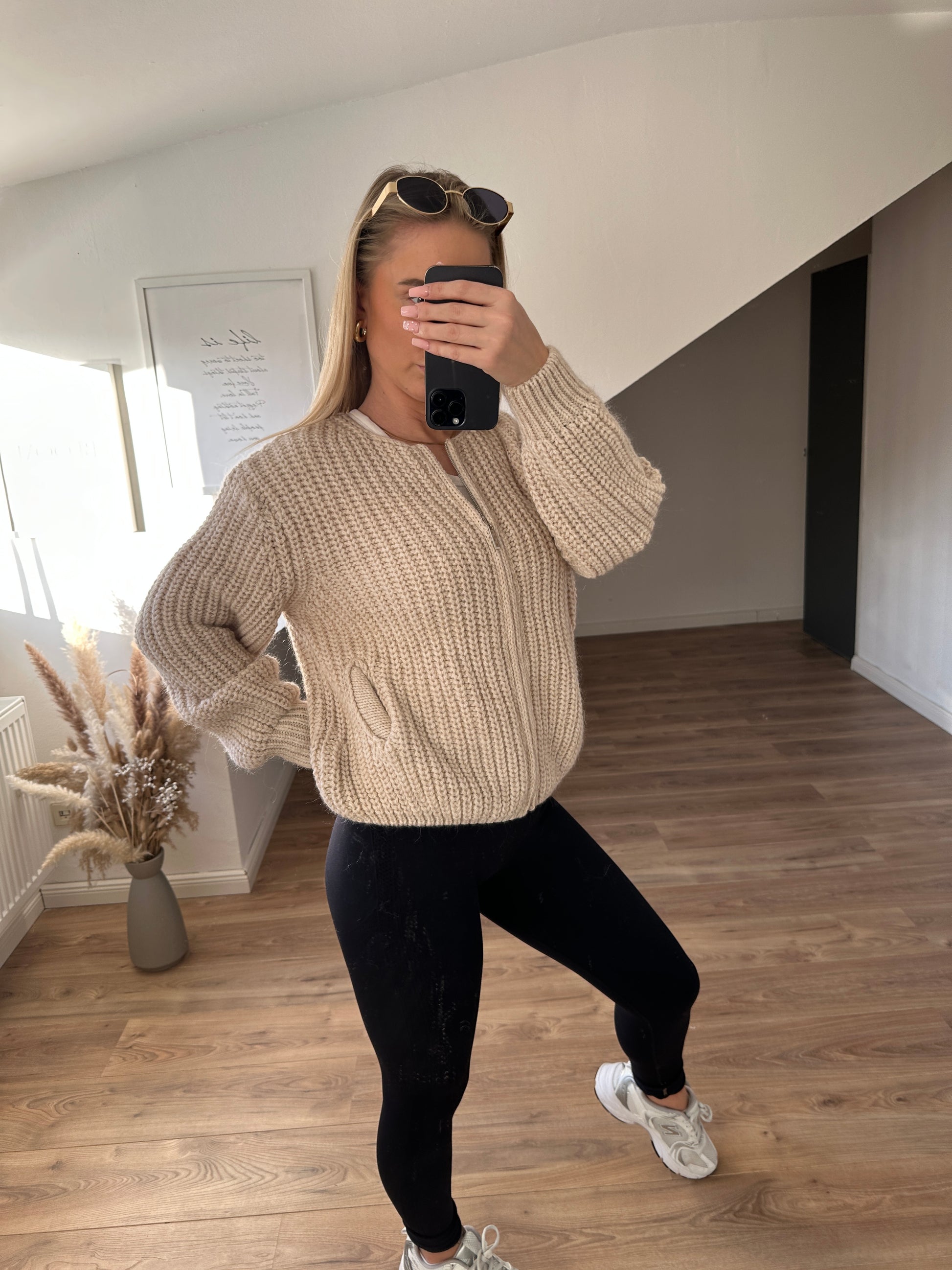 Strickjacke "Vanni" Beige mit Reißverschluss