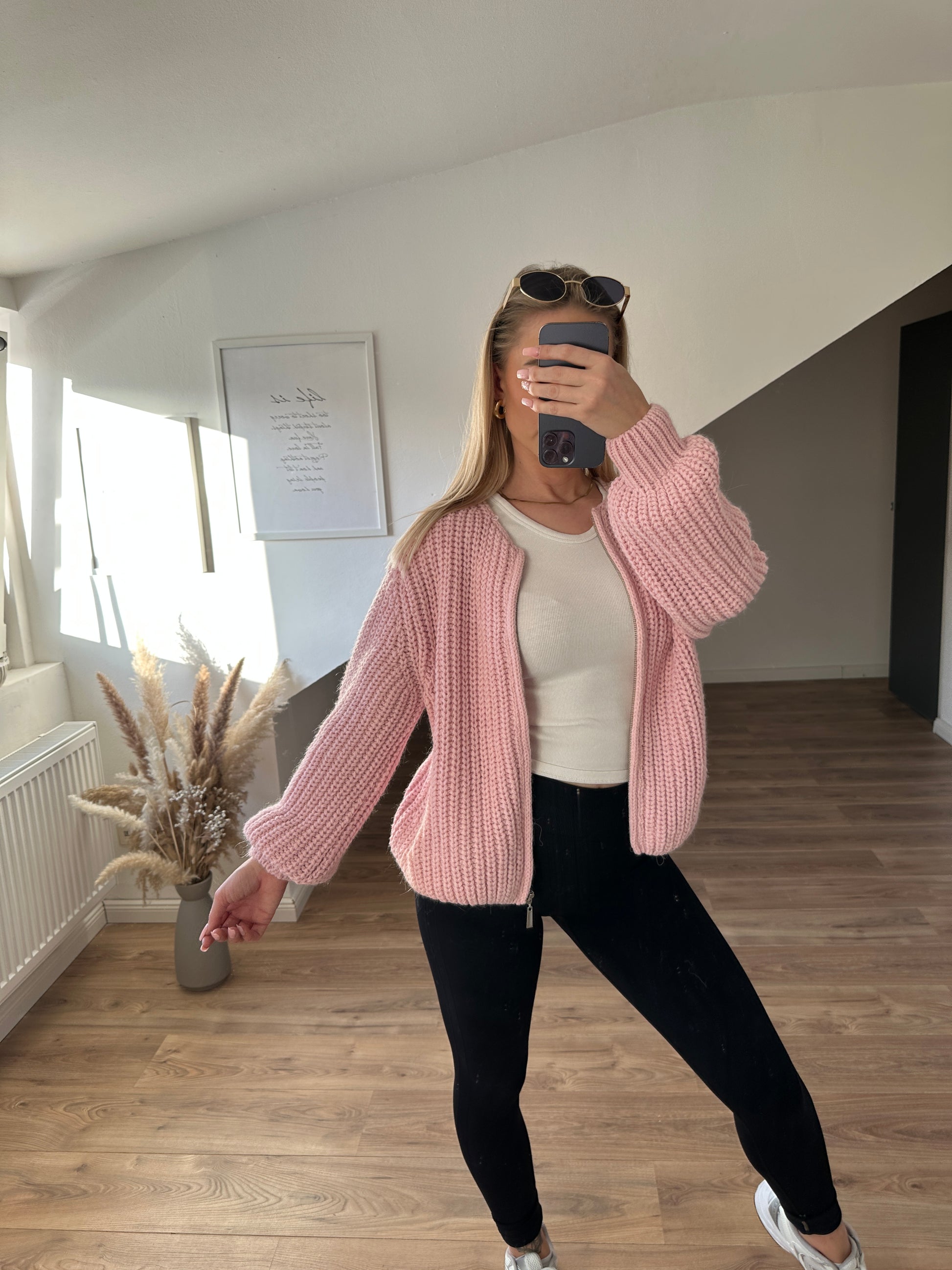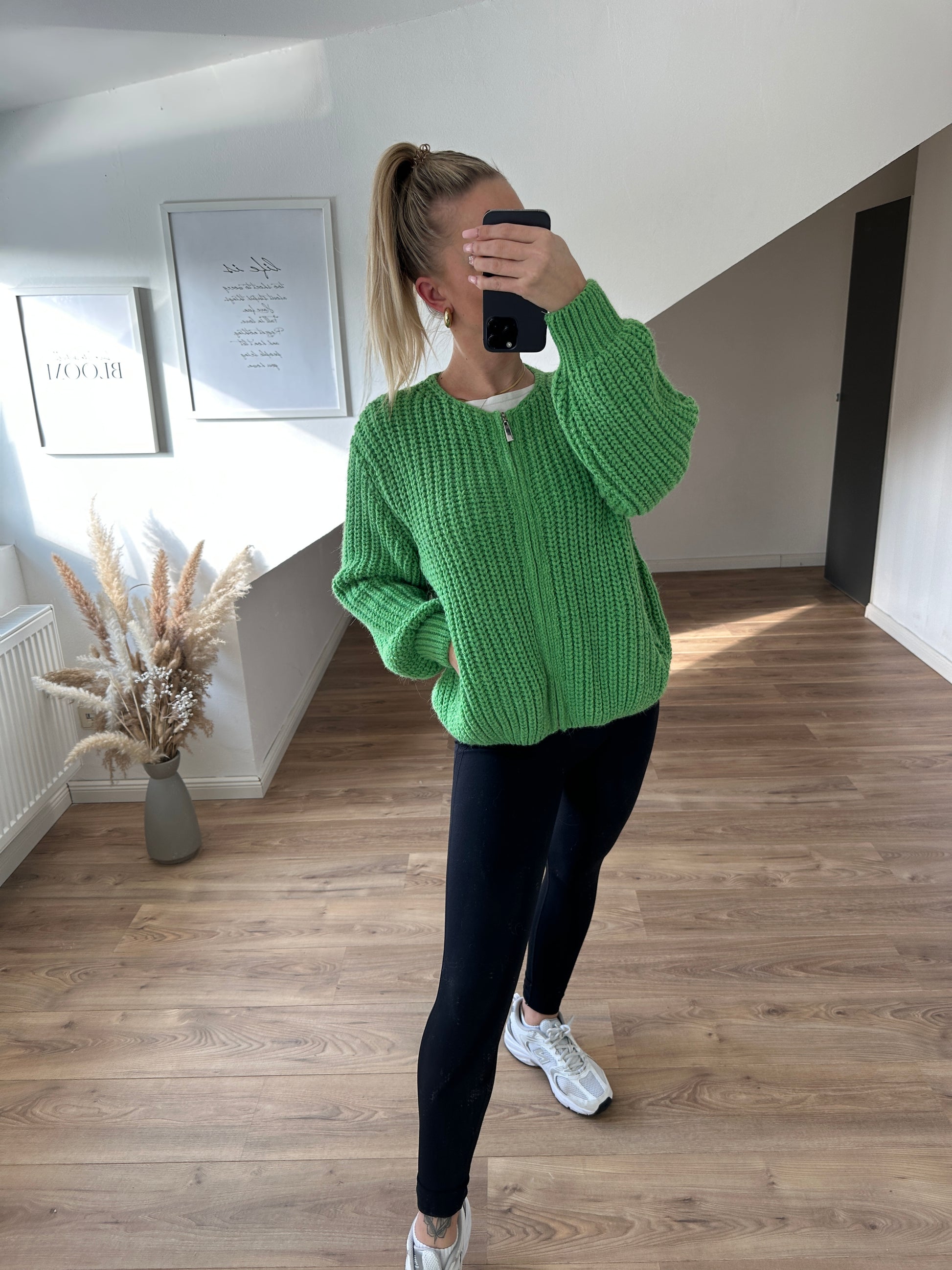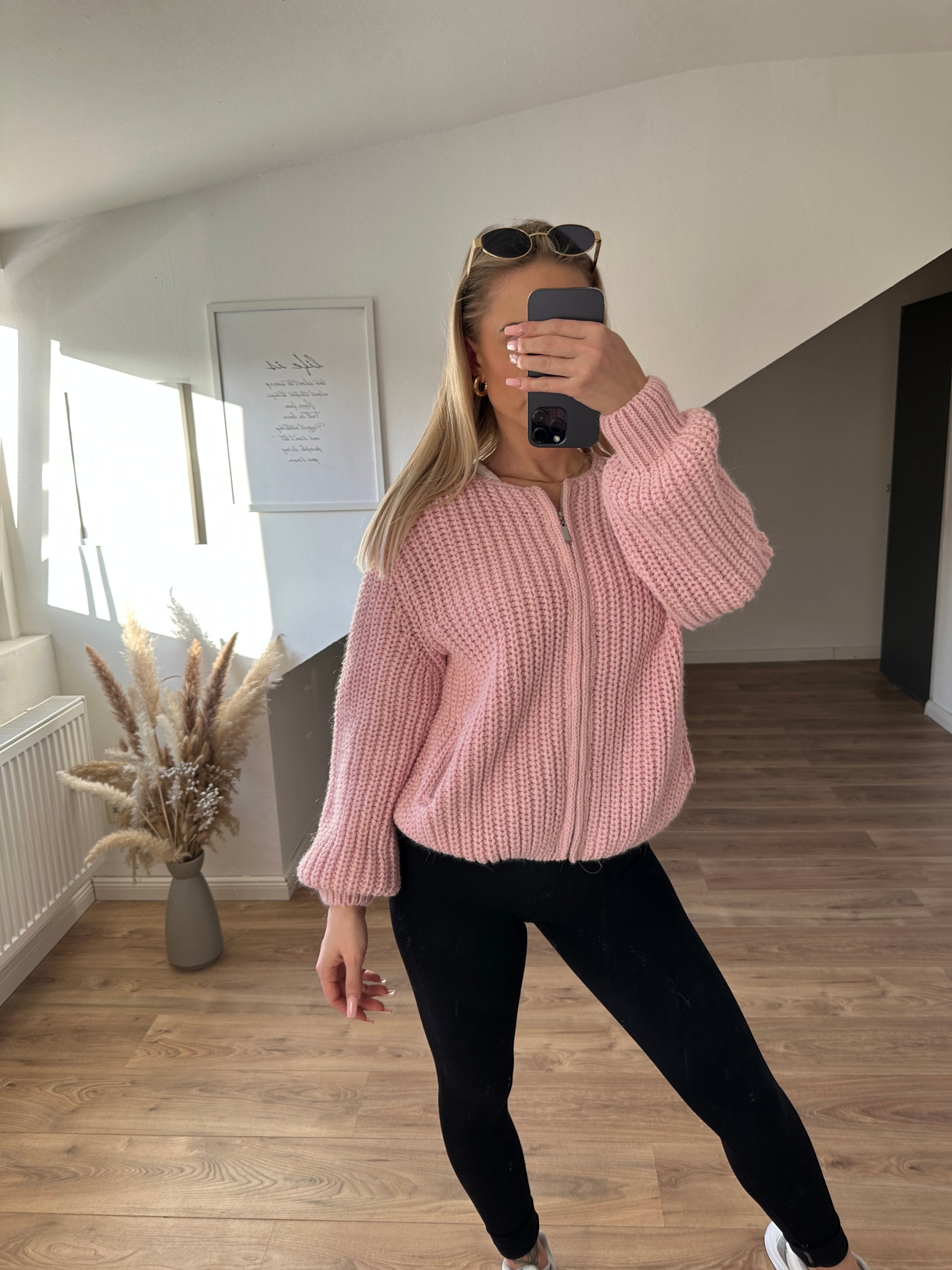 Grobstrick Cardigan mit Reißverschluss und Taschen